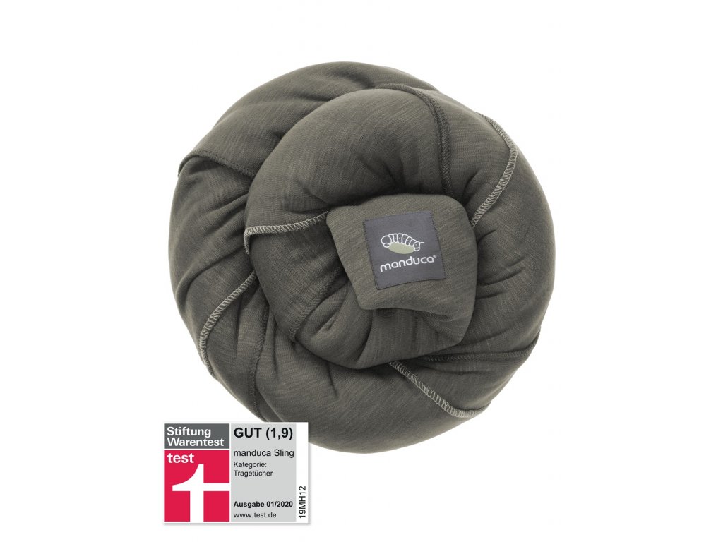 Střed šátku je označen logem „manduca sling“.