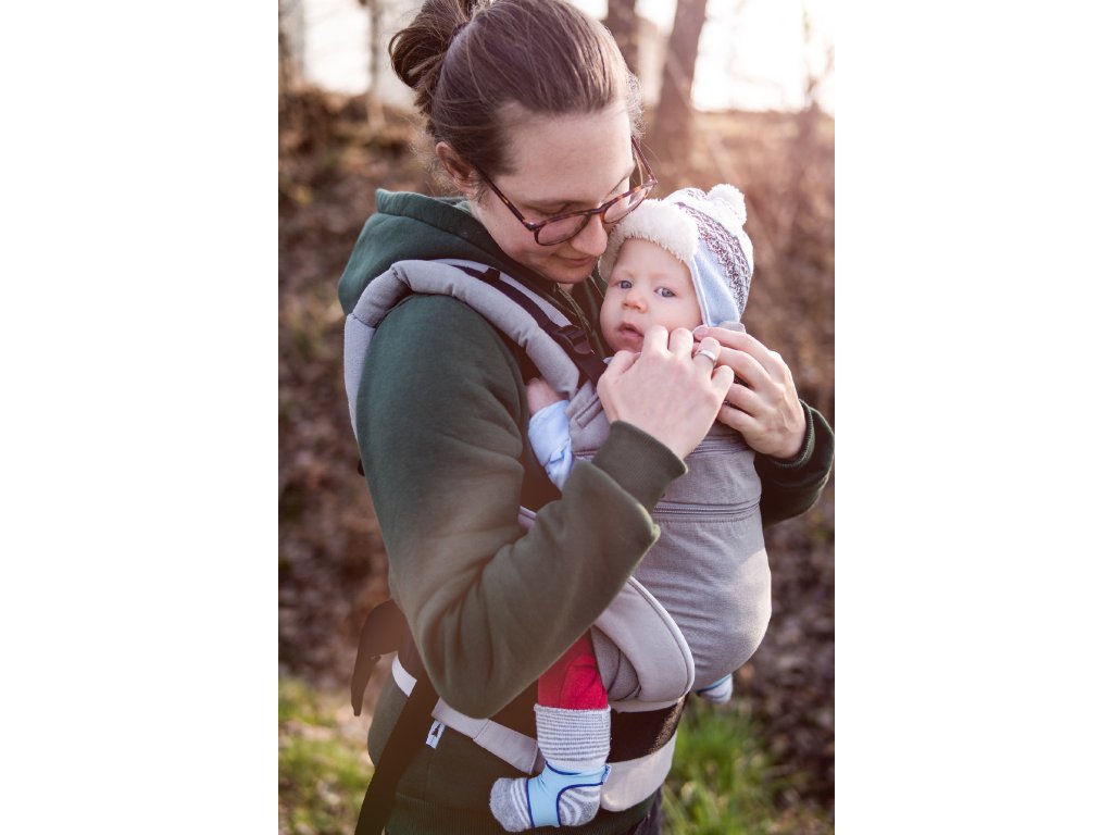 3) Šířku nosítka upravujete od narození až po velikost batolete, které už běhá po svých… ale stejně chce občas do náruče.